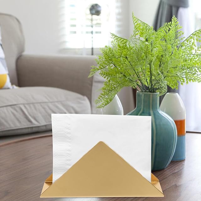 STOBAZA ナプキンスタンド ナプキン立て ナプキンホルダー 卓上 おしゃれ ステンレス 三角 装飾 ティッシュ収納 業務 家庭用 ペーパーホルダー「ゴールド」