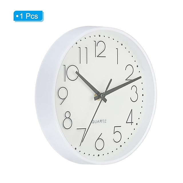 PATIKIL 20 cm ラウンド壁掛け時計 電池式サイレント 非カチカチ 掛け時計 オフィス 寝室 キッチン用 ホワイト