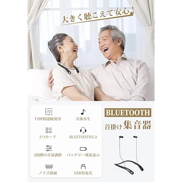 商品名:FIIL 集音器 高齢者 首かけ集音器 充電式 5段階音量調節 4種類モード ノイズ抑え 紛失対策 電話/テレビ/音楽対応 敬老の日 母の日 父の日 日本語説明書付き