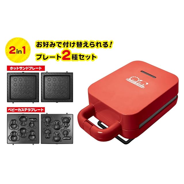 可愛らしいホットサンドと、可愛らしいベビーカステラがこれ1台で作れる! お好みで付け替えられるプレート2種セット! ホットサンドはパンの耳を切らずにも対応可能。 着脱式のプレートでお手入れも簡単。 ●セット内容/本体、ホットサンドプレート1組、カステラ動物園プレート1組、取説 ●パッケージサイズ/約H37✕W10.5✕D6㎝ ●商品サイズ/本体:約H21✕W13.3✕D9.5cm(コード除く)、 プレート:約H12✕W13✕D1cm ●重量/約1150g(パッケージ含む:約1300g) ●電源/AC100V(家庭用電源使用) ●型番/ABS15A ●定格消費電力/520W ●定格周波数/50/60Hz ●温度ヒューズ/240℃ ●コードの長さ/約0.9m ●材質/本体:フェノール樹脂、プレート:アルミニウム合金(フッ素樹脂加工) ●期間/購入日より6ヵ月間