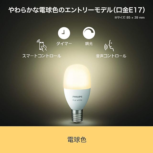 商品名:Philips Hue (ヒュー) ホワイトシングルランプE17(電球色)【 Echo、Google Home、Apple HomeKit、LINE対応】