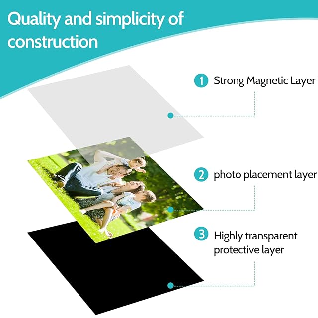破れるフィルム: 当社の磁気フレームには保護フィルムが付いており、輸送中の傷から保護します。 受け取ったら保護フィルムを外すだけで、写真をはっきりと表示できます。 耐久性のある PVC 素材から作られ、当社の磁気写真フレームは、時間の経過とともに黄ばむことなく残ります。 一貫してクリアな表示。