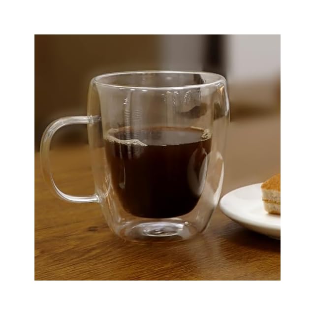 Vasemouh グラス コップ タンブラー 450ml 2個セット 保温 保冷 二重構造 カップ マグカップ ダブルウォールグラス コーヒー ミルク ジュース ティー 透明 ハンドル