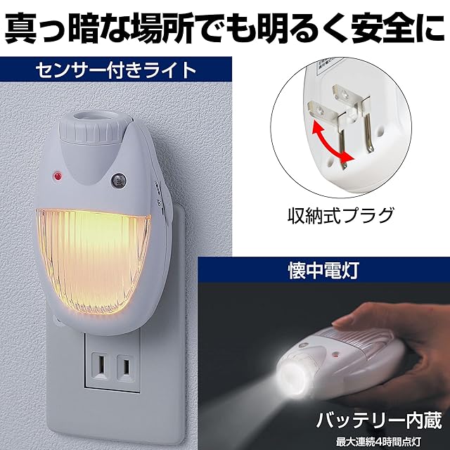 商品名:エルパ (ELPA) LEDセンサーライト LEDライト ナイトライト 懐中電灯 100V 0.4W 屋内用 TDH-300