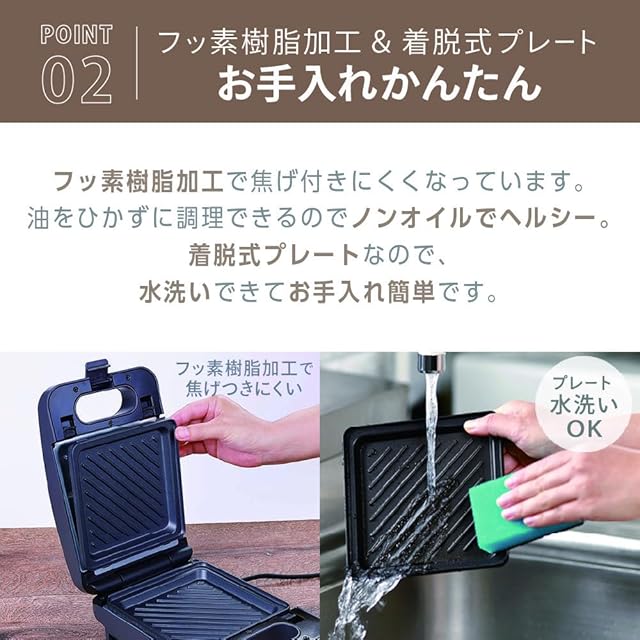 ✅フッ素樹脂加工&着脱式プレート:フッ素樹脂加工で焦げ付きにくくなっています。油をひかずに調理できるのでノンオイルでヘルシー。