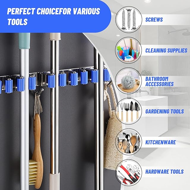 【パーフェクトツツールオーガナイザー】:掃除用具 がすでにあなたの家を占めているなら、このほうきで雑物を掃除する時です。 モップキャッチはあなたの家を整理するのに役立ち、ガレージ、クローゼット、地下室、庭園、ランドリー、オフィスなどに設置できます。 ほうき、モップ、ふきん、ブラシとスコップの出し入れがしやすく、ほうきやモップホルダーは数分で清潔に保てます。 あなたのクリーニングツールを整理し、手の届くところに置いてください。
