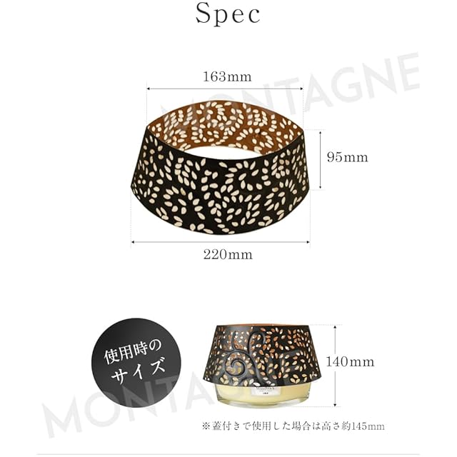 パチパチとした音も人気のアロマキャンドルWoodWickシリーズですが、シェードを併用していただくことで、切り抜かれたレリーフ模様からキャンドルの明かりが漏れ、幻想的な陰影をつくりあげます。