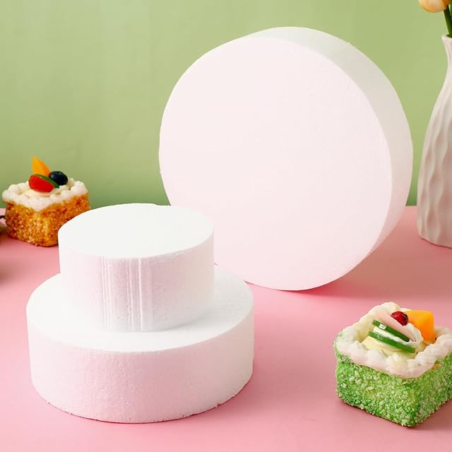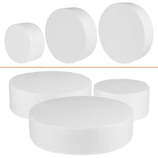 Frcolor 発泡スチロール ケーキ ダミーケーキ 丸 土台 ケーキダミー 3段 (20+15+10cm) クレイケーキ 円柱 フェイクケーキ 材料 展示スタンド 結婚式 誕生日 パーティー用