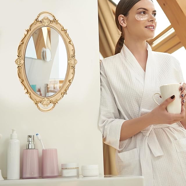 【レトロなデザインで雰囲気アップ】この化粧鏡はレトロな楕円形デザインを採用しており、フランスの宮殿エンボス加工が施されています。おしゃれなインテリアを求める方には、視覚的な焦点となり、室内の雰囲気を一気にアップグレードします。