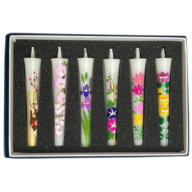 (御供 のし付き 包装品)絵ろうそく 花ろうそく 3号 6本 入り 手描き ( 手書き ) 花蝋燭セット 和ろうそく 絵ろーそく 春夏秋冬 キャンドル 法事 仏壇神棚 贈答用 お供え物 ギフト 贈り物 手土産 お土産 #3063