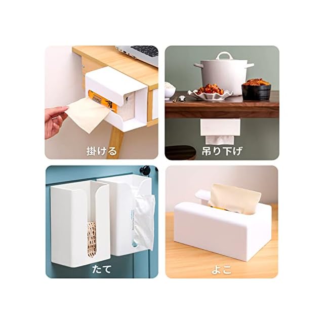 粘着シートにより壁面などへ簡単に取り付けられる、シンプルなティッシュボックスケースです。<br> 縦置きと横置きの両方に対応しており、壁掛け用をはじめ、アイデア次第で様々な個所へ取り付けることができます。<br> <br> ・カラー:ホワイト<br> ・素材:ABS<br> ・耐荷重:最大5kg<br> ・外形サイズ:18.8×11.8×8.7cm<br> ・重量:約195g<br> ・セット内容:ティッシュボックスケース本体、粘着シート一式<br> <br> ※粘着式のため、表面に凹凸があるなど平滑ではない箇所には取り付けられません。<br> ※使用されるティッシュ箱のサイズや形状によっては、ケースに入らない場合がございます。<br> ※当商品を使用した際に起こった脱落などによる事故や損害については一切の補償をいたしかねます。<br> ※日本語説明書やティッシュなどは付属いたしません。また、取り付けや使用方法についてのサポートは行っておりません。<br> ※輸入品の為、輸送に伴う小キズやスレなどが外装や本体にある場合がございます。<br> ※製造時期により外観や仕様に若干の変更がある場合がございます。予めご了承ください。<br>