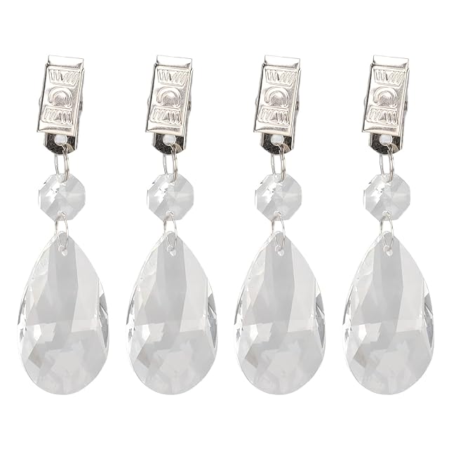 KIMISS テーブルクロスウェイト セット のために クリスタルガラス製 水滴型 プリズム ペンダント ピクニック アウトドア ディナー 装飾用 金属クリップ付き
