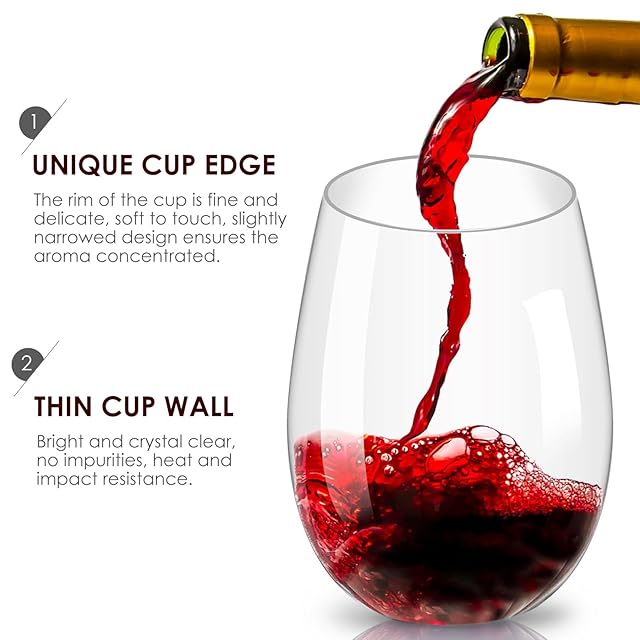 ✅【耐衝撃性素材】:ワイングラスはプラスチック製、耐衝撃性を持ち、割れない設計で安全に使用できます。ガラスのように見える透明感で、見た目も美しいです。