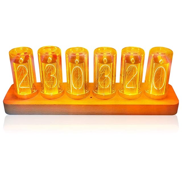EGAOJP 目覚まし時計 レトロ ニキシー時計 デジタル ジクシー 時計 6桁LED 置き時計 贈り物 クリスマス プレゼント LEDデジタル木製置時計