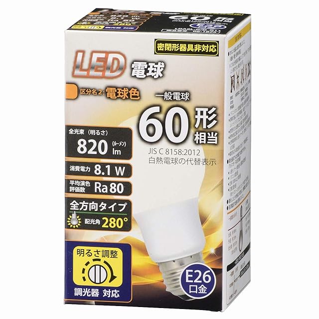 商品名:LED電球 E26 60形相当 全方向 調光器対応 電球色_LDA8L-G/D G11 06-1873
