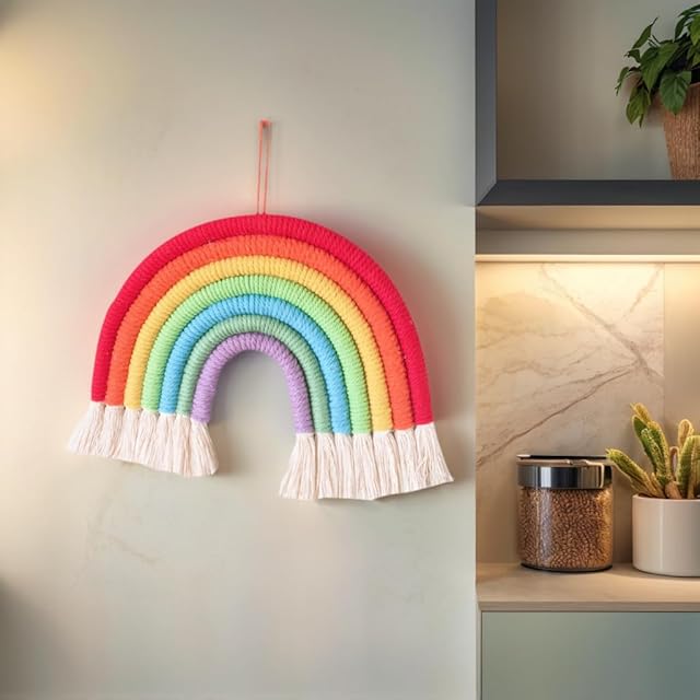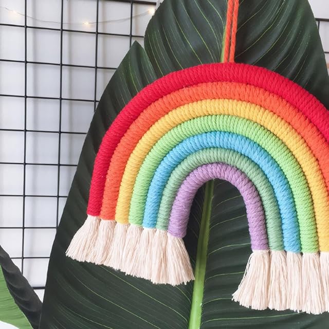 OUNONA 虹 レインボー 壁掛け 飾り ペンダント オーナメント ウォール デコレーション 北欧 おしゃれ 可愛い プレゼント 織り工芸品 壁アート 女の子の部屋 寝室 装飾 インテリア雑貨 夏 リビング 玄関 オフィス