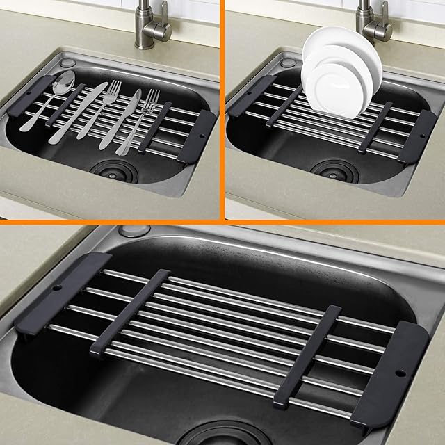省スペース: シンクの中やシンクの上に置くことができ、カウンターの貴重なスペースを有効活用できます.使わないときはラックを吊るせば簡単に収納できます.