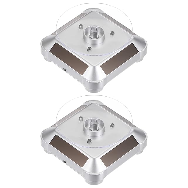 uxcell 回転式展示棚 ソーラー回転ショーケース ジュエリー展示用ターンテーブル 3Dプリントジュエリー展示用 360°2方向回転 自動 ABSプラスチック 両用LEDライト 9cmプレート直径 シルバートーン 2個