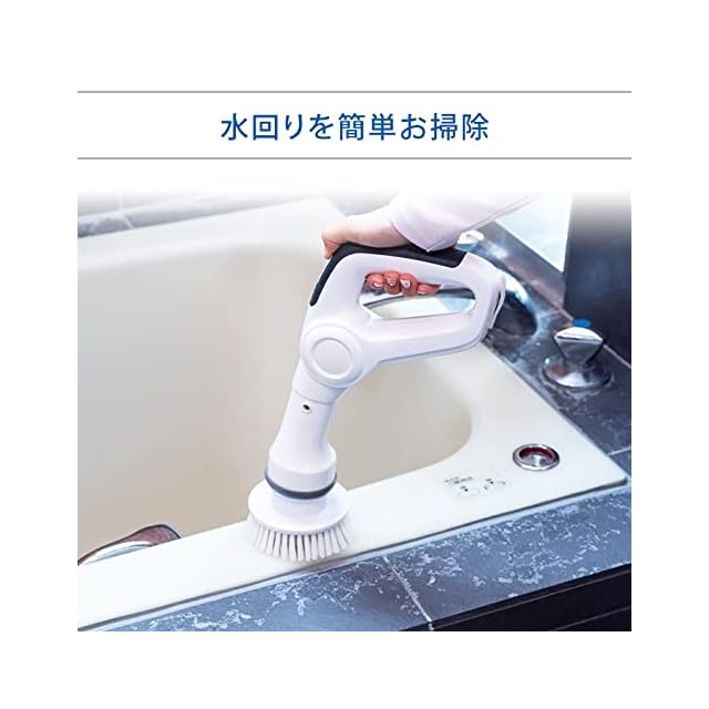 <p>今まで大変だったお風呂掃除がラクになるパワフルな電動回転ブラシです。<br><br> 強力な電動ブラシなので力いらず!ゴシゴシとタワシやスポンジで洗う必要はありません。<br>手に馴染むグリップ形状なので持ちやすくできています。<br><br> 3種類のブラシが付属しているので洗う場所にあわせて使い分けることができます。タイルや壁の広い面から洗いにくかった浴室の隅までラクラクお掃除♪<br><br> 洗面台などのお掃除にもご使用頂けます。<br><br>【 商品詳細 】<br>・サイズ(約):300×155×70mm(ブラシ無着用時) 約510g(ブラシ無着用時)<br>・電源方式:充電式<br>・電源:(入力)AC100-240V 50/60Hz (出力)DC8V 200mA<br> ・電池:ニカド充電池 DC3.6V 1300mAh<br>・連続使用時間:約30~45分(使用状況・環境により異なります)<br>・無負荷回転数:230/分<br> ・運転音:65dB<br>・防水等級:IPX4(本製品は完全防水ではございません。ヘッドを水没させないでください)<br>・コード長さ:(約)1.5m<br> ・充電時間:約8時間<br>・セット内容:本体、デッキブラシ、ワイドブラシ、コーナーブラシ、ACアダプター、取扱説明書 (書)</p>
