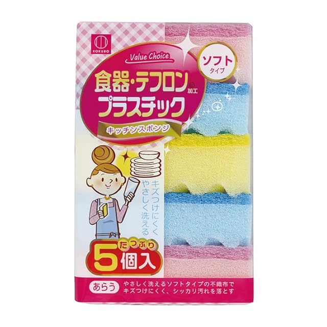 商品名:KOKUBO バリューチョイス キッチンスポンジ (ソフトタイプ / 5個入×6個セット / 食器洗い) お徳用 食器 鍋 (テフロン加工/二層構造/ポリエステル不織布/ポリウレタンフォーム) スポンジ 3667
