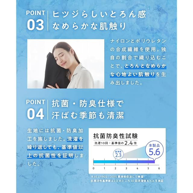 【なめらかな肌触り】ヒツジのいらない枕カバー 爽涼 はナイロンとポリウレタンの合成繊維を使用。独自の割合で織り込むことで、とろんとなめらかな心地よい肌触りを生み出します