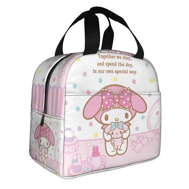 まいめろでぃ 保冷 がま口 ランチバッグ ブラック お弁当箱 保温 保冷バッグ ファスナー付き コンパクト お弁当袋 ソフトクーラーバッグ トート・エコバッグ