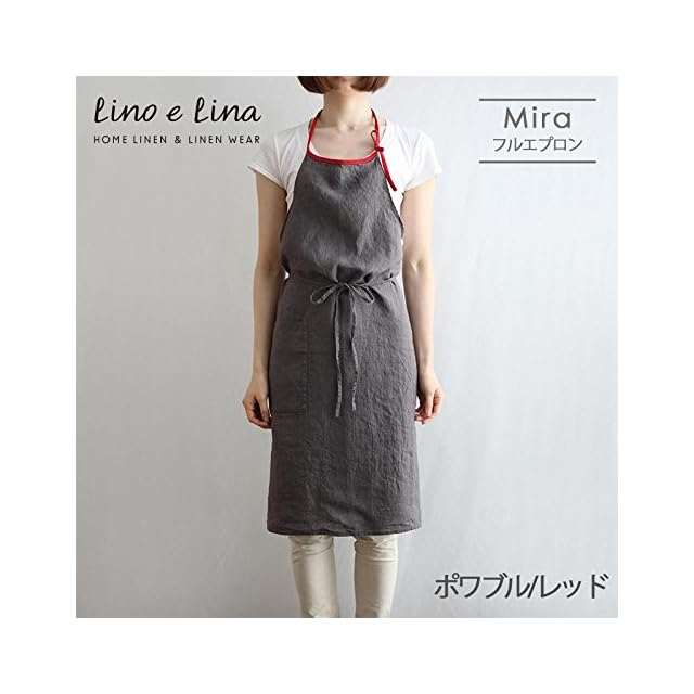 リーノ・エ・リーナ Lino e Lina フルエプロン ミラ・ポワブル レッド A204 エプロン かわいい シンプル ナチュラル 前掛け リネン
