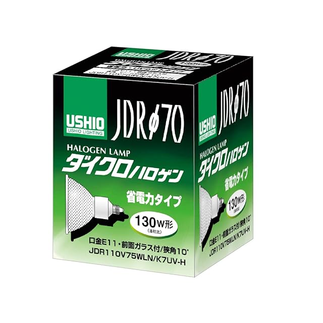 ウシオ USHIO ダイクロハロゲン JDRφ70 省電力タイプ 130W形 110V E11 狭角 UVカット 電球色 小型
