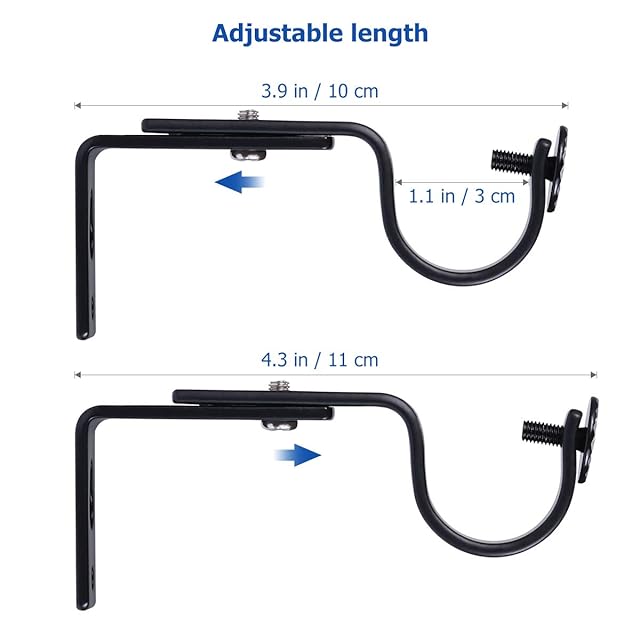 材質:鉄。 長さ:約9.5-10.2cm。18~22MMのカーテンロッドに対応。ネジノブは固定されており、ポールのサイズに応じて締め具合を調整でき、取り付けはしっかりしています。
