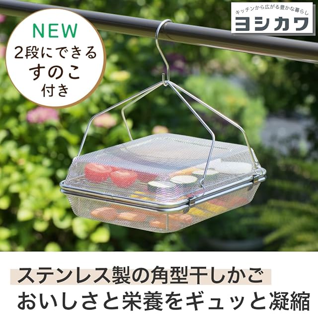 ヨシカワ 暮らし良い道具 ステンレス 角型 干しかご(2段タイプ) 野菜干し ドライフルーツ バスケット 日本製 燕三条 YJ3860