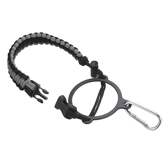 パラコードハンドルには、プラスチックリングの下でパラコードを締めるためのトグルが付いています。プラスチックが多く、ゴムが少ないため、広い口を取り囲むのに多くの力が必要です。コードを外してもル ープ状にして何にでも接続できるので、ハンズフリーで持ち運ぶことができます。