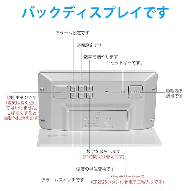 【大型ディスプレイ明確なビジョン】電波 デジタル使いやすい、背面のファンクションキーは明確で理解しやすく、調整や設定も簡単です。