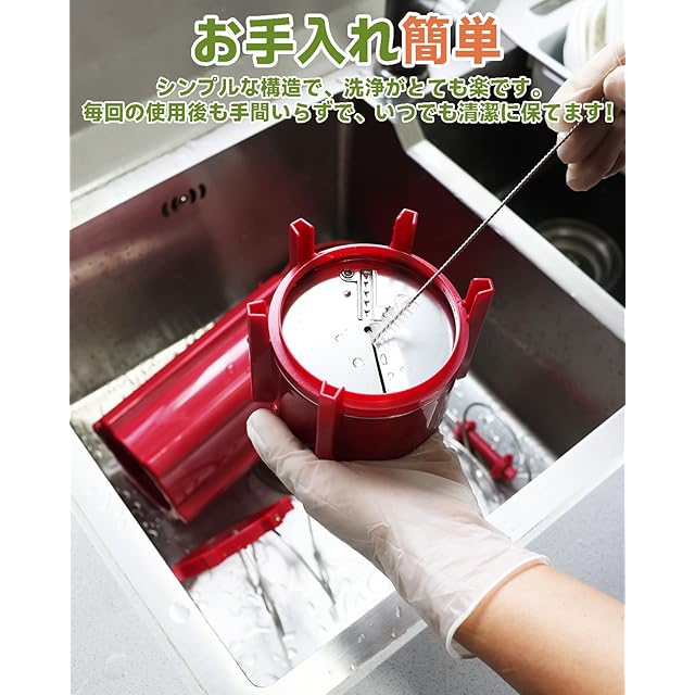 【お手入れ簡単】このポテトスライサーには簡単な組み立て手順で、付属のブラシを使って使用後の清掃もスムーズ。手間いらずで、いつでも清潔に保てます。