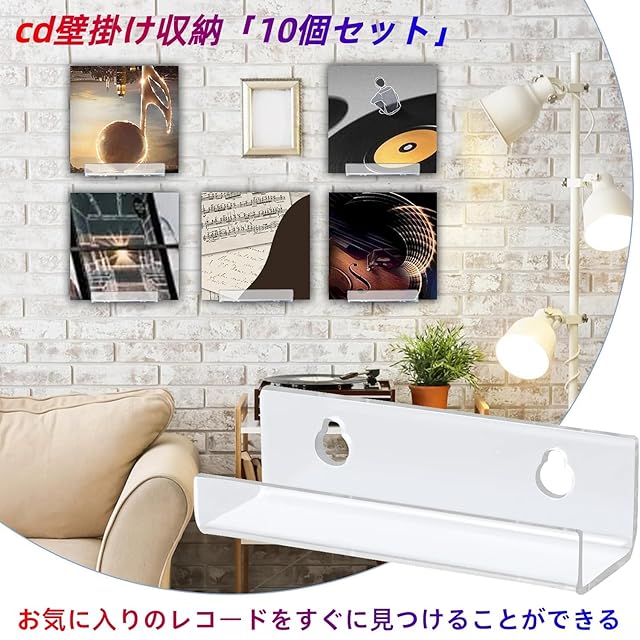 cd壁掛け収納 10個セット レコード 壁掛け 透明 コードラック 壁掛け棚 アクリル マガジンラック 展示棚 小物 cdラック 簡単取付 ネジとテープ付き レコード ディスプレイ 壁面収納 パンチングボード ウォールポケット10 x 3.5 x 3cm Record Wall Display