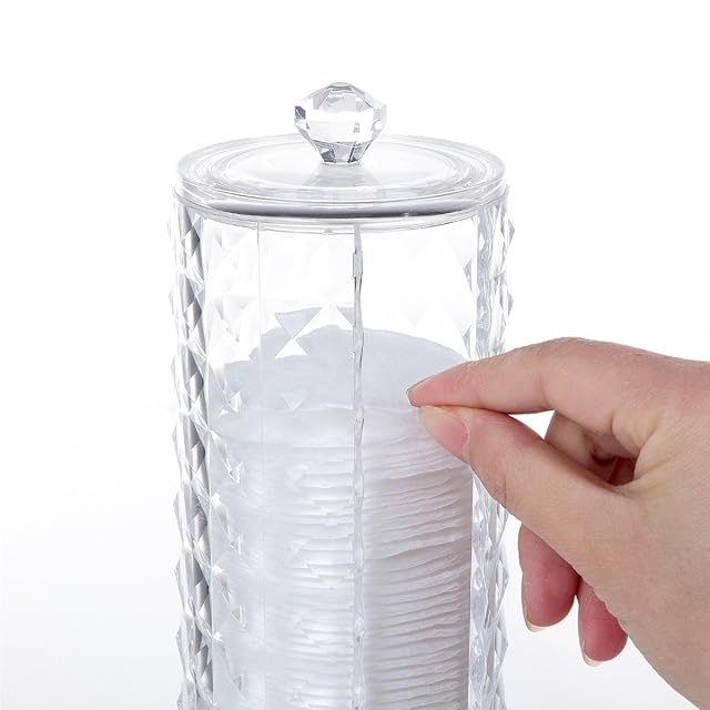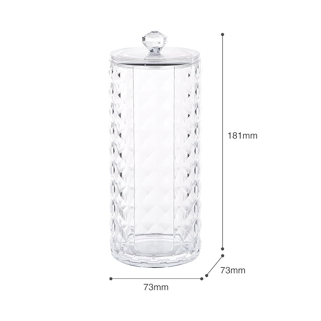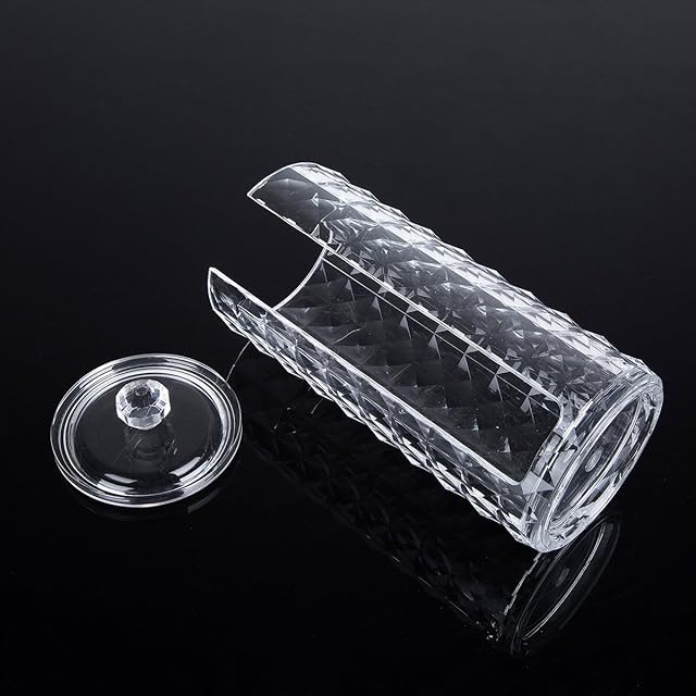 <br/>サイズ:7*18cm 材質:アクリル<br/>高品質なアクリルで作って、透明度が高いです。<br/>側面は窓があって、コットンを取りやすいです。<br/>蓋付きなので、ほこりの侵入を防ぎます。<br/>ダイヤモンド模様のデザインで、側面のキラキラ感があって、高級感があります。