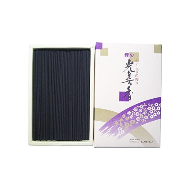 煙の少ない白檀お線香 お香 煙少光善香 130g 淡路梅薫堂。<br>怒りっぽい人でも角がなく、丸くしてくれるといわれる白檀。夏のお茶席でも、ただでさえ暑いのに熱くなららいように白檀のお香で環境を整え涼しいお点前。 好き、嫌いではなくご家族で穏やかに過ごす普段のお勤めに最適の見えないほど煙の少ない白檀お線香です。創業から百年以上の歴史を誇る淡路梅薫堂製造。長年の伝統製法を大切に、天然原料にこだわりお線香を作り続けております。 人の集まる銀座や京都は市場のようなお線香の販売地。<br> 全国の生産量七割りを占める日本一のお線香生産地は淡路島西海岸にあります。中でも全国唯一といえる線香屋が軒を連ねるかおり風景100選の一つ江井。良いお線香を作るのに相応しい、偏西風を利用する西側を向いた県道31号線のお線香に好まれる一番といえる良い場所で丁寧に製造してお届けします。ご進物用お線香・お線香ギフト・贈答用お線香は、大切な方へ想いを形に淡路梅薫堂のこだわりお線香の香りに託してどうぞ。