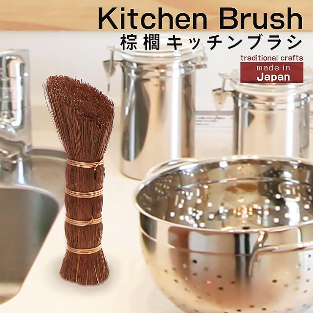 天然素材の棕櫚は水の中でも腐りにくくしなやかで耐久性があり、 長持ちするのでスポンジに比べエコで経済的。 フライパンや鍋はもちろん網ザルや食器にも! 木製食器との相性は抜群! 熟練のほうき職人により一つ一つ丁寧につくられたキッチンブラシ。ギフトにも最適!