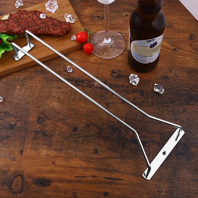 ワイングラスホルダー 収納 ステンレス製 業務用 ワインラック グラススタンド シャンパングラス吊り下げ ネジ付き ワイン棚 便利 省スペース ワイングラス 収納 戸棚下 一連 シルバー
