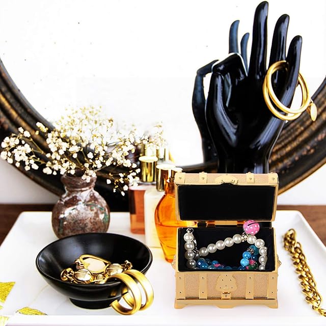 ゴールドの感: この金色の宝箱は、なデザインで、インテリアとしても映えるアイテムです。