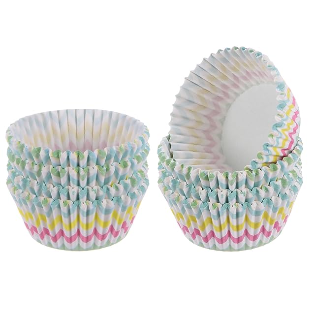 uxcell 200個 カップケーキライナー カラフルな波 カップケーキカップ スタンダードサイズ マフィンライナー ペーパー ベーキングカップ ラッパー 油汚れ防止 パーティー 結婚式 誕生日