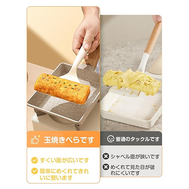 ロングハンドル:熱保護の長いハンドル、滑り止めの機能も揃っています、快適な握りで、より良い卵料理を助けます。