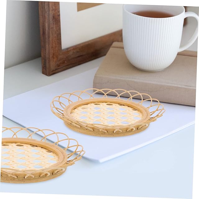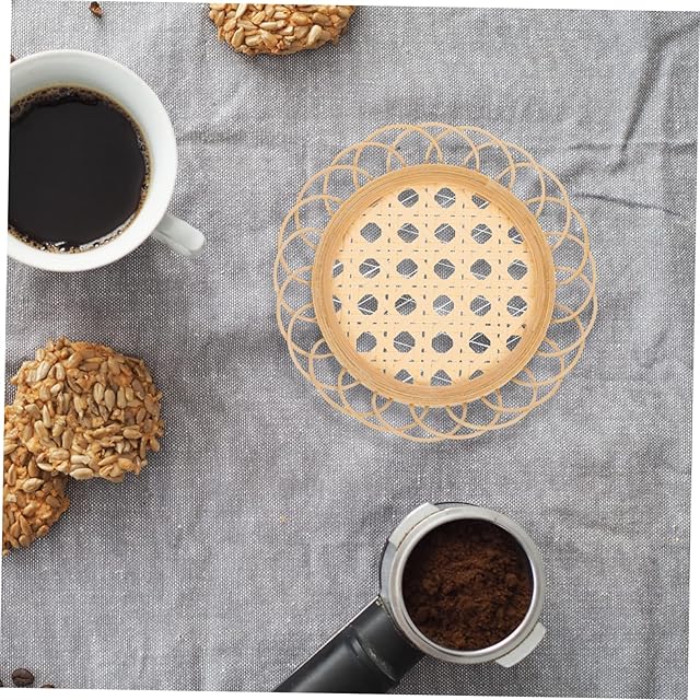 NUOLUX コースター ラタン編み 竹 花編みデザイン 滑り止め 断熱 防水 鍋敷き テーブルマット 手作り風 6枚セット 天然素材 和食器対応 熱さ防止