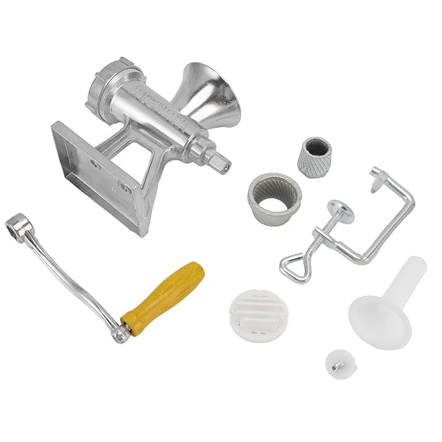 仕様:<br> アイテムの種類: 手動肉挽き器<br> 素材: アルミ合金、合成木材<br> モデル: 46 S<br> カラー: シルバー<br> 重量: 約。 1000g / 35.3オンス<br> <br> パッケージリスト:<br> 1×ボディ1×浣腸チューブ<br> 1×プレスダイ<br> 2 x 研削コア<br> 1×ハンドルスクリュー<br> 1×アイスクリュー<br> 1×ハンドル<br>