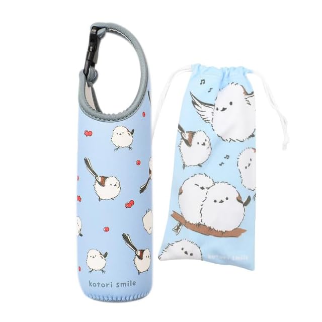 限定ミニ巾着付き ペットボトルカバー シマエナガ ブルー 水筒 ペットボトル ケース シマエナガ グッズことりスマイル 【kotori smile】