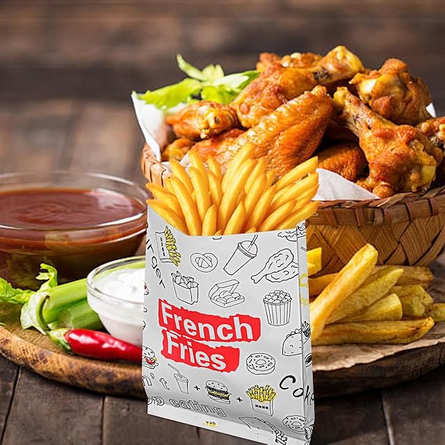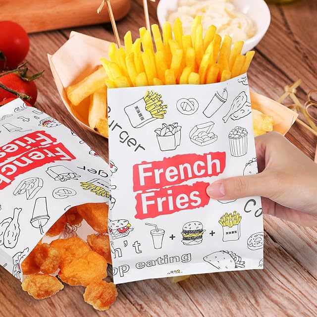 Frcolor ポテト 袋 300個 耐油袋 フレンチ フライドポテト ふりふりポテト 袋 フライドポテト チュロス 袋 スナック テイクアウト 袋 スナック 容器 食品 梱包 袋 紙 スナック 袋 スナック