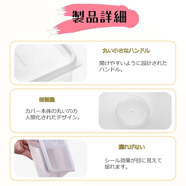 クリアな視界: 透明なので、蓋を開けなくても中身が一目瞭然。この機能は、アイテムを探す時間を節約し、キッチンの散らかりを最小限に抑え、迅速かつ便利な食事の準備に最適です。