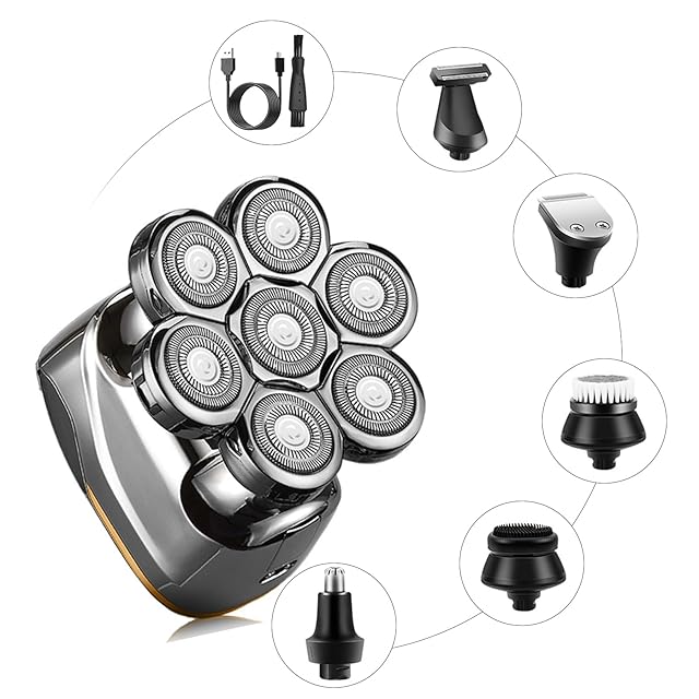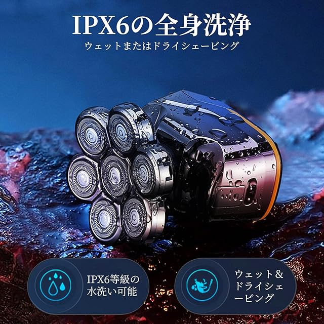 商品名:スキンヘッド シェーバー メンズ 多機能 6in1防水 7Dフローティングヘッド シェーバー 髭剃り ヒゲトリマー バリカン 鼻毛カッター 洗顔ブラシ 回転式 電動カミソリ 水洗い 乾湿両用 IPX6防水 お風呂剃り可 USB充電式 LEDディスプレイ 父の日 誕生日祝い プレゼント