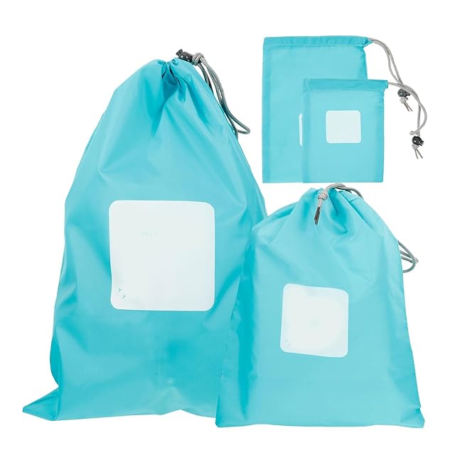 LIOOBO 巾着袋 ナイロン 収納バッグ 軽量 防水 小物いれ 折りたたみ 旅行 出張用 トラベルポーチ 4枚セット