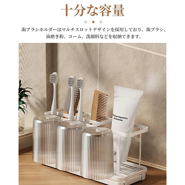 歯ブラシスタンド 置き型 防錆 歯ブラシホルダー 大容量 歯ブラシ立て 歯ブラシ置き 水切り 歯磨き粉 コップスタンド コップ 収納 洗面台 洗面所 電動歯ブラシ シェーバー 収納 受け皿付き 多機能