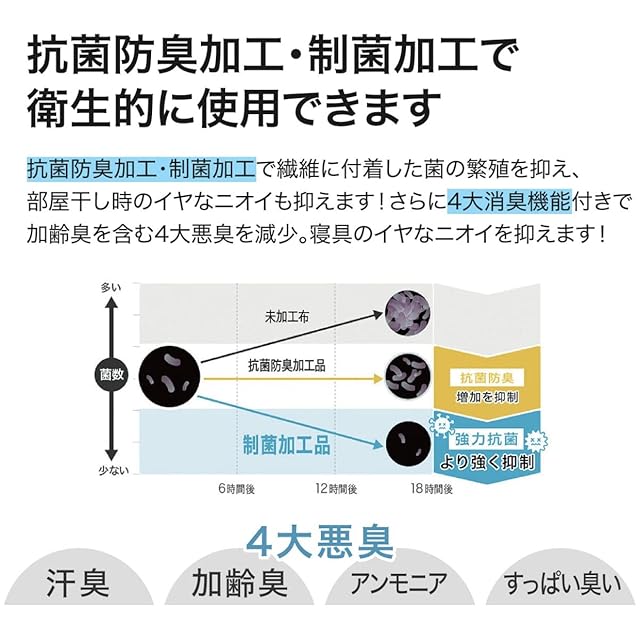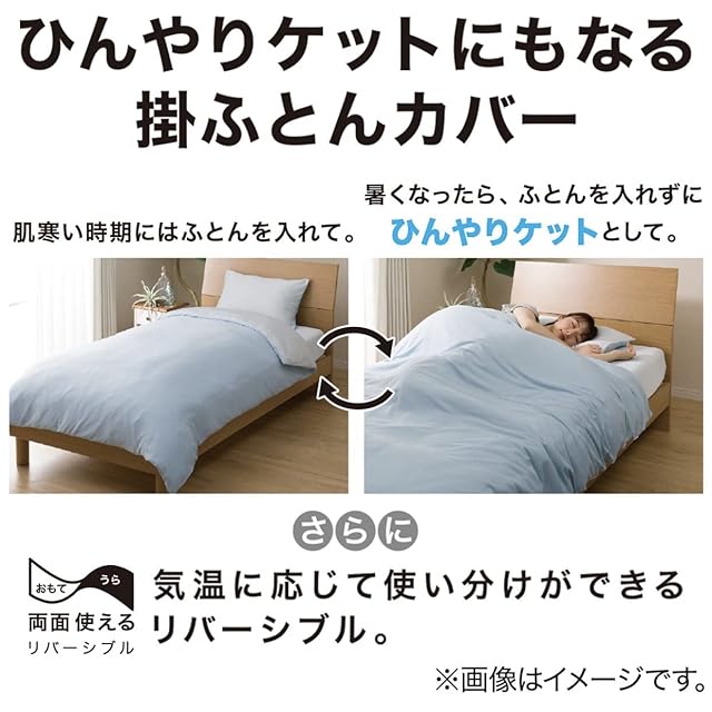 布団を入れずにケットしても使えます。カバーを替えるだけですぐにひんやり接触冷感。抗菌防臭加工・制菌加工付きでいつでも清潔。